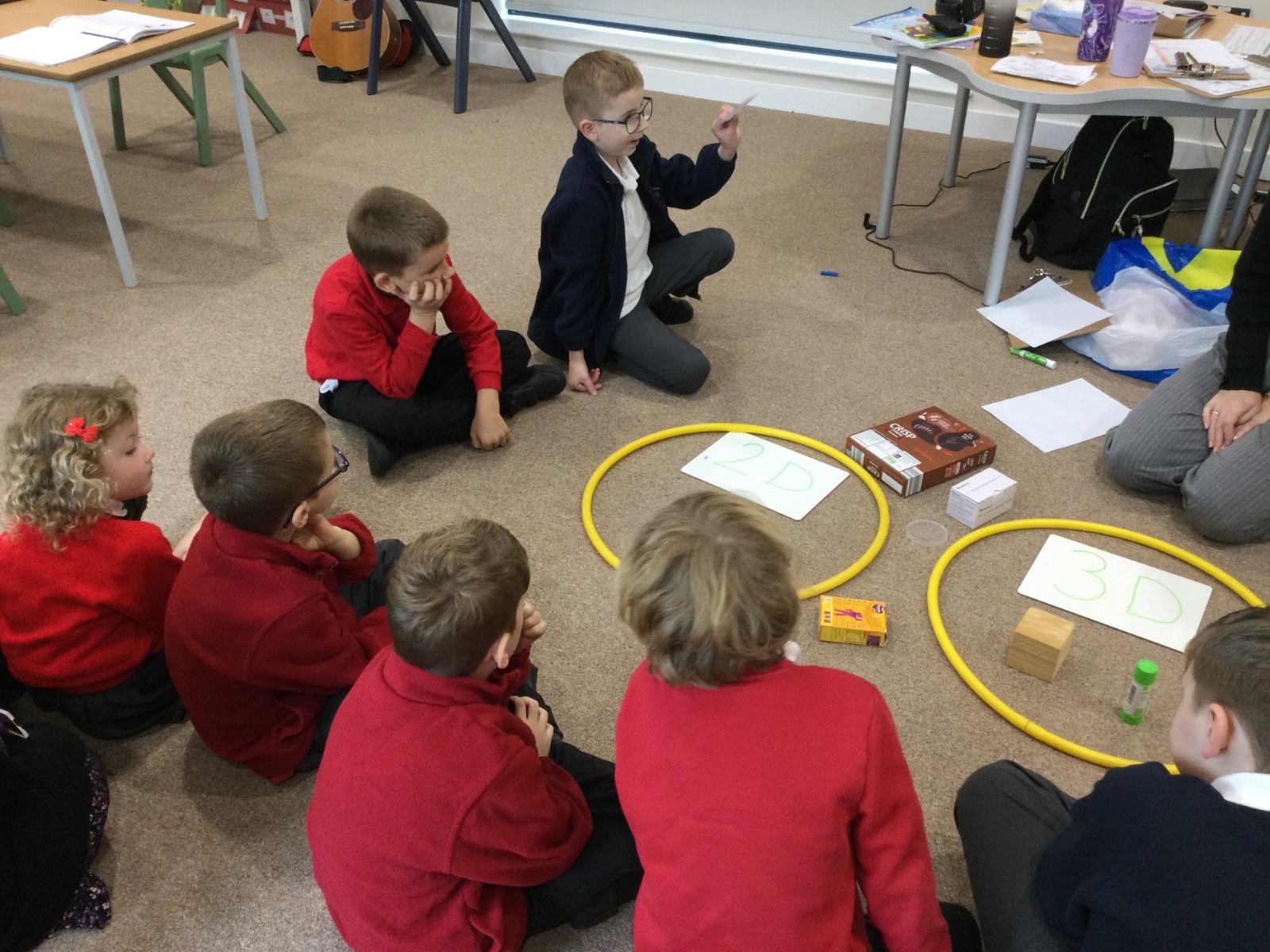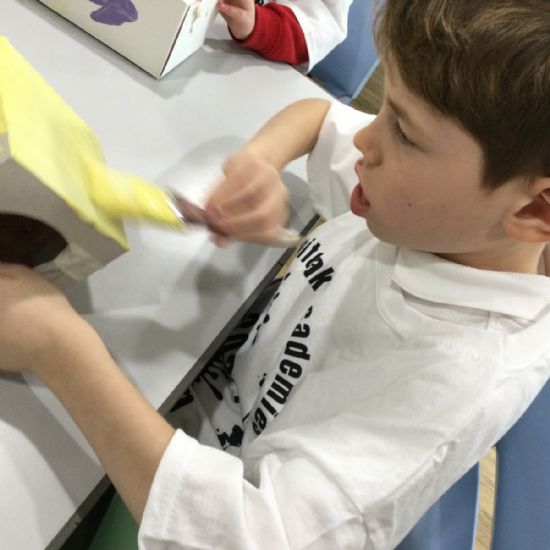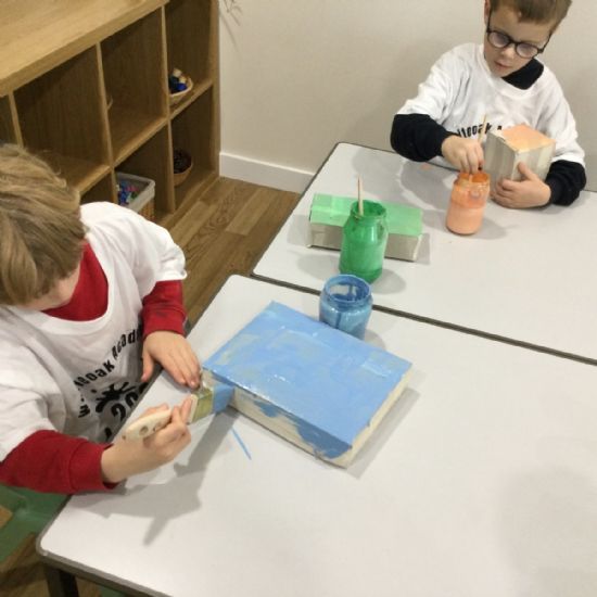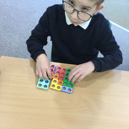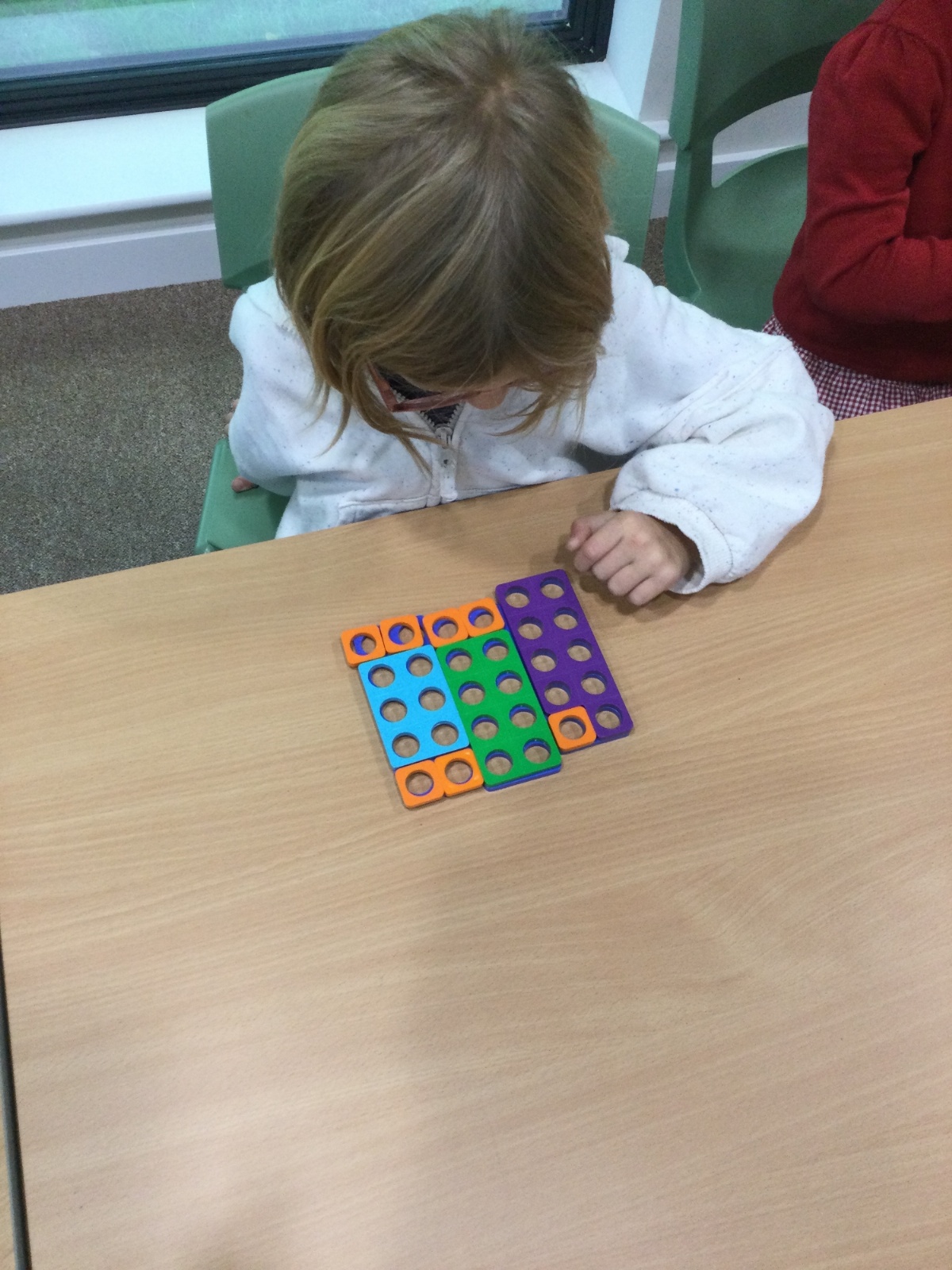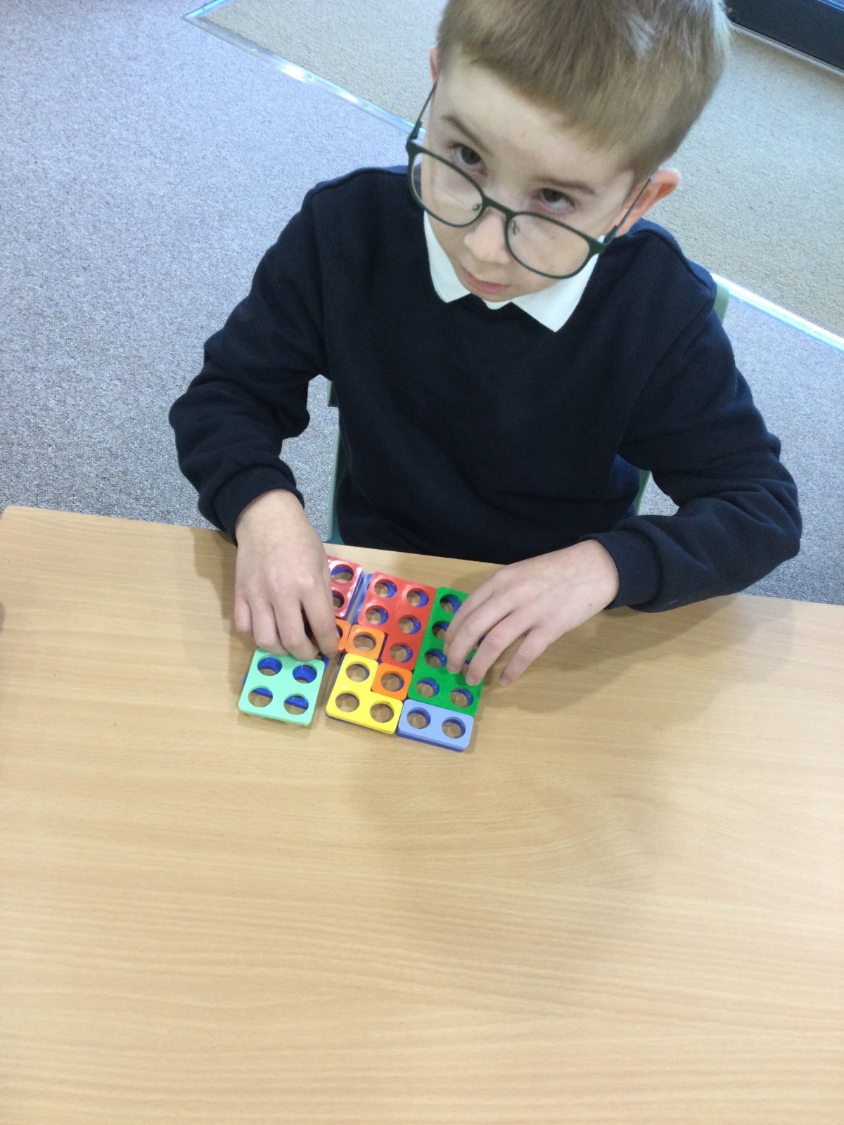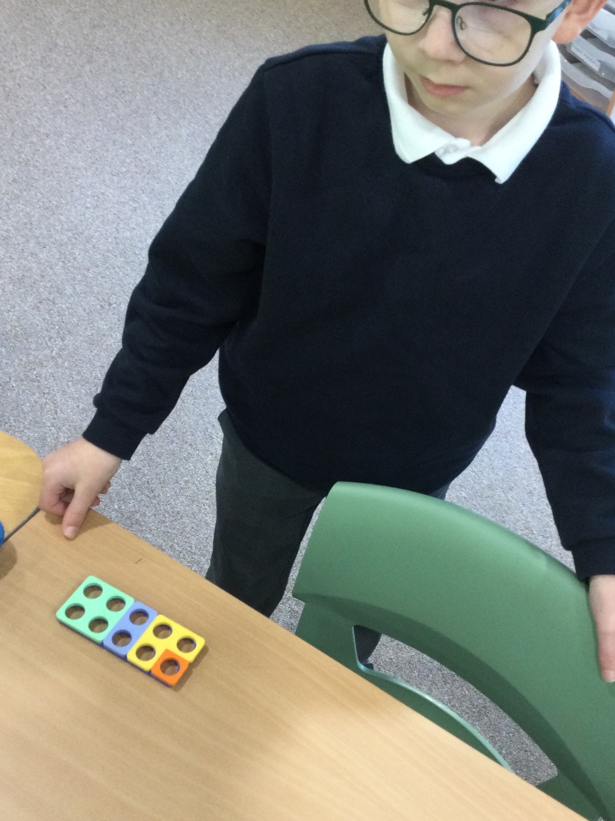 Have a look at some of our practical maths activities where we use concrete objects to explore mathematical concepts. We have used Numicon to find all the number bonds to 10. When learning about 3D shapes we really thought about the question around what makes a shape 3D. Can a picture on paper really be 3D? We explored nets of 3D shapes and used these to make our own boxes to create a group skyline. We followed a line of interest around measurement and carefully ordered our book collection by height.