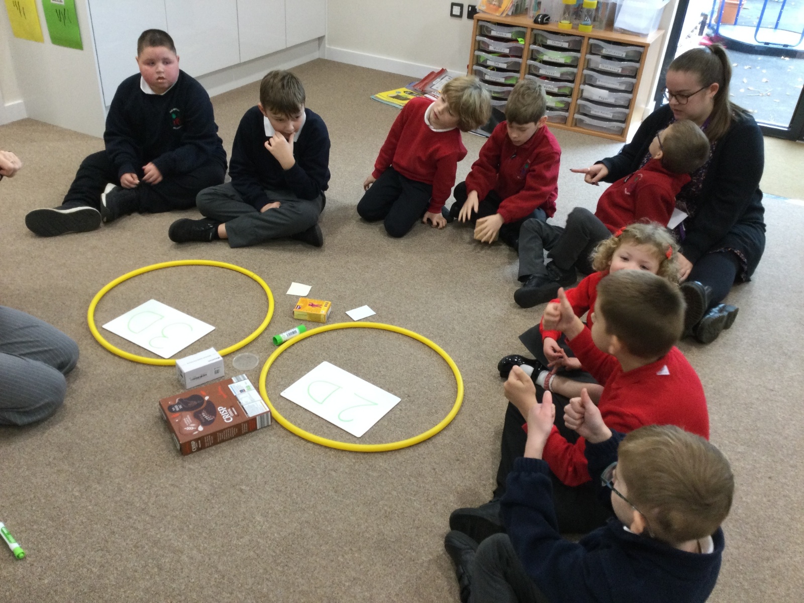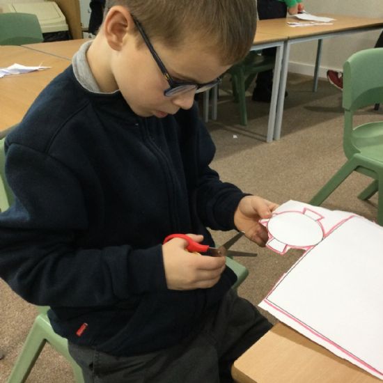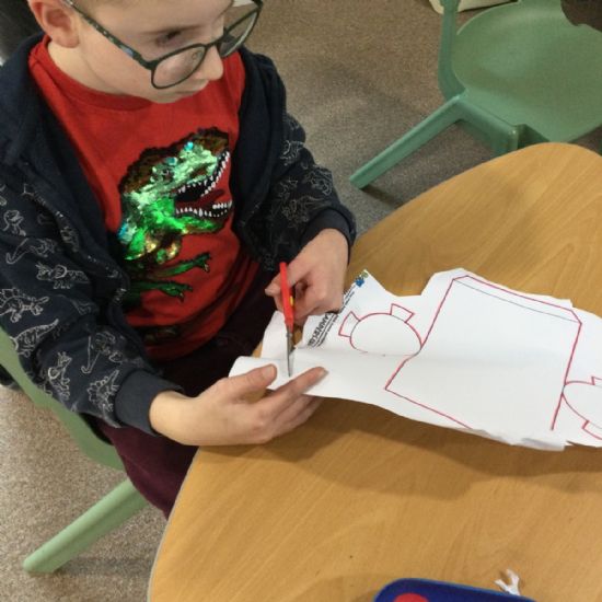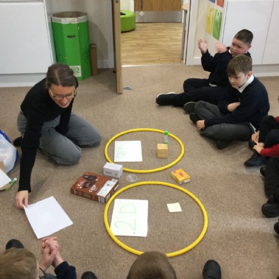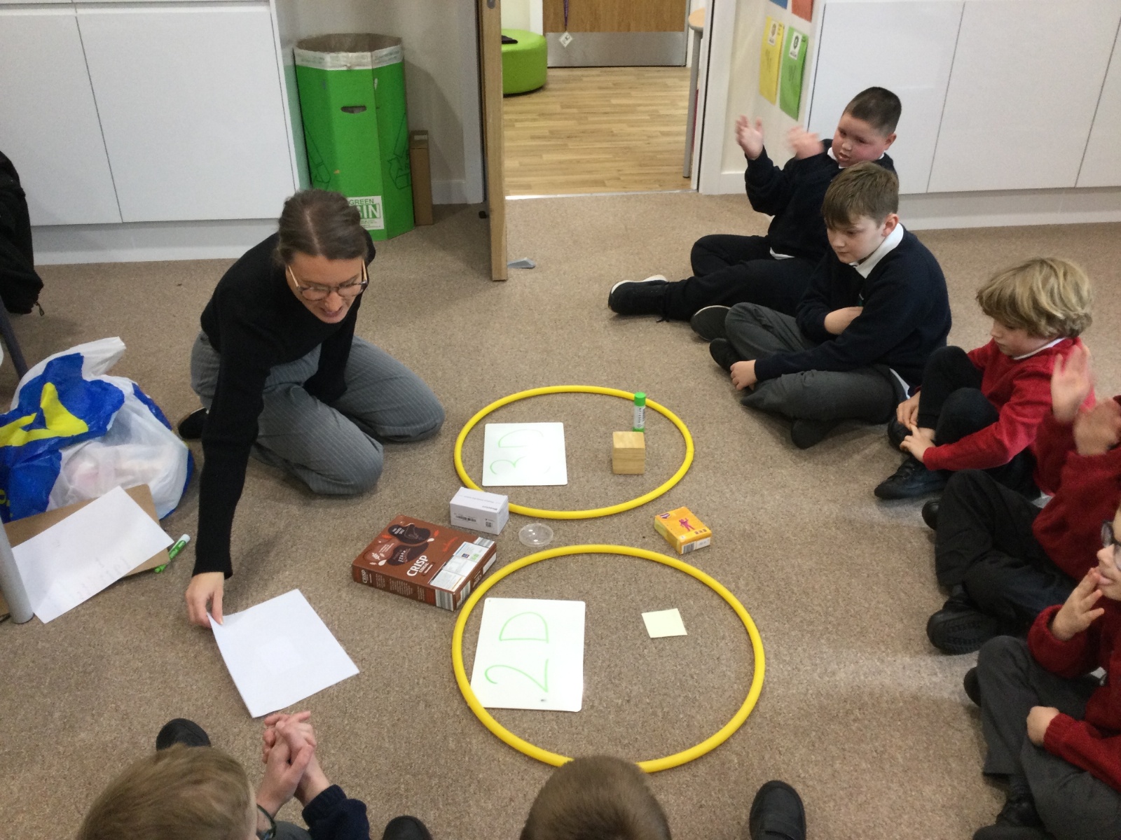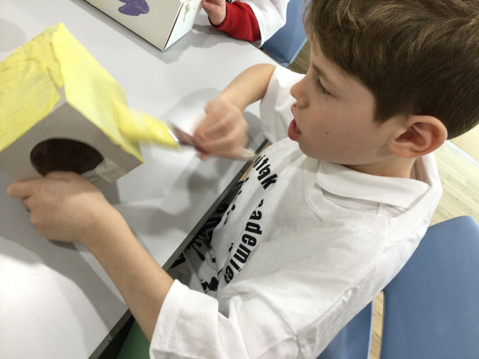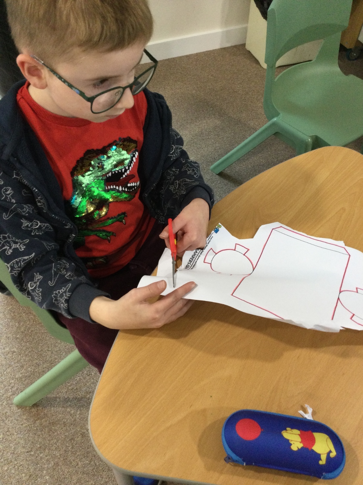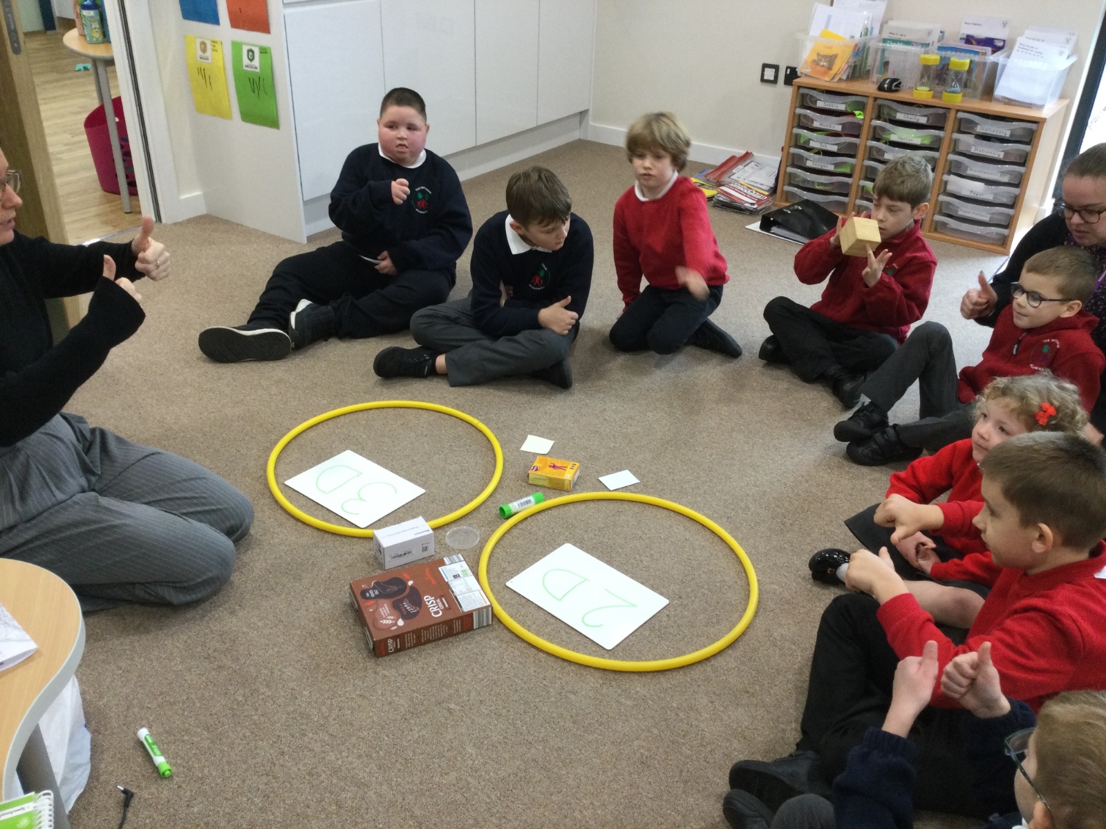 Have a look at some of our practical maths activities where we use concrete objects to explore mathematical concepts. We have used Numicon to find all the number bonds to 10. When learning about 3D shapes we really thought about the question around what makes a shape 3D. Can a picture on paper really be 3D? We explored nets of 3D shapes and used these to make our own boxes to create a group skyline. We followed a line of interest around measurement and carefully ordered our book collection by height.