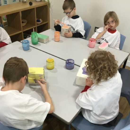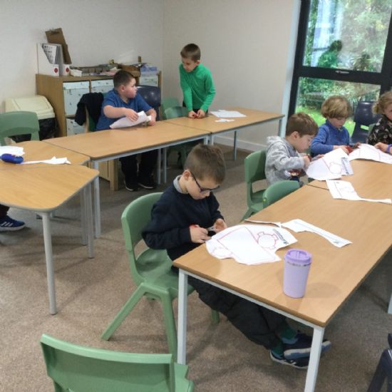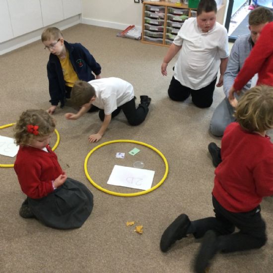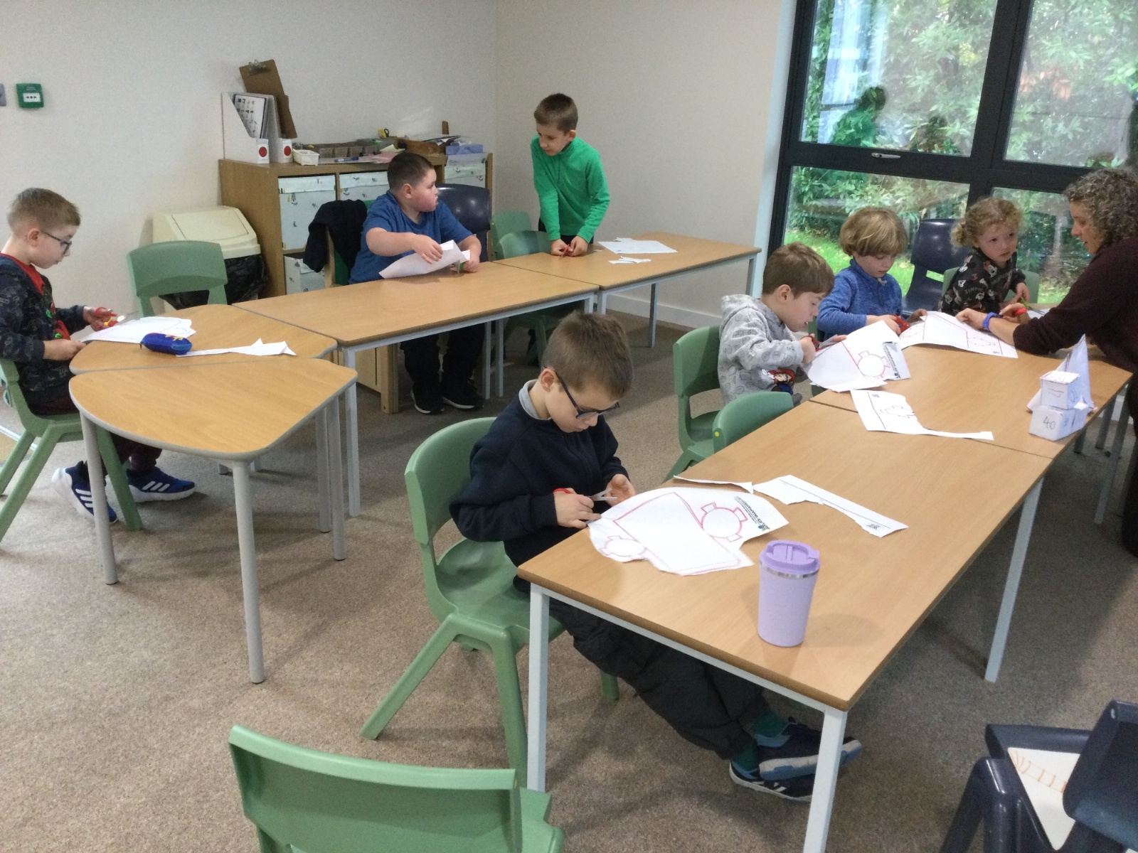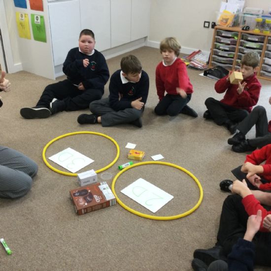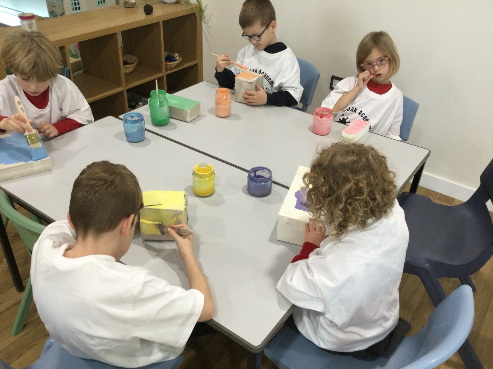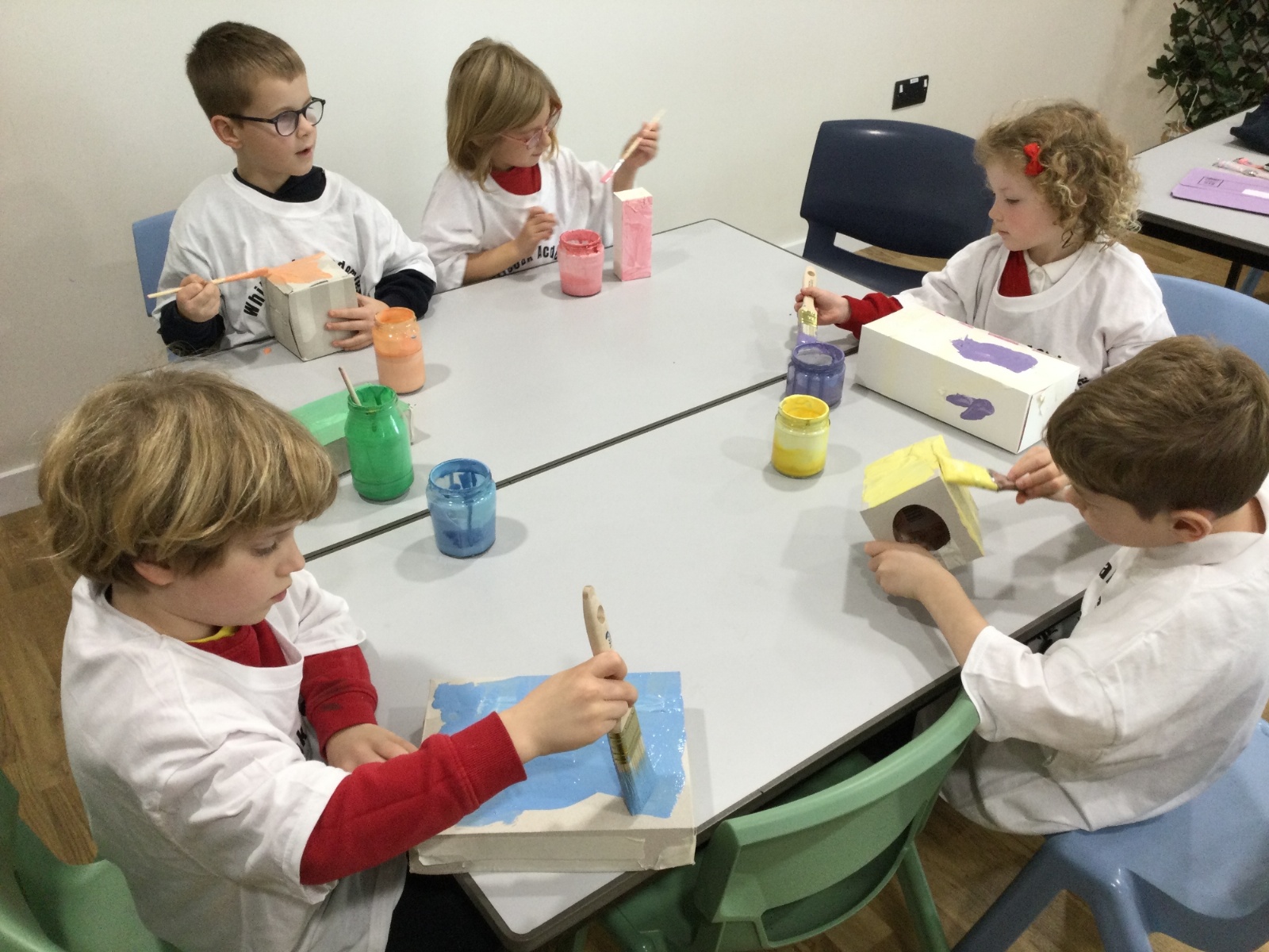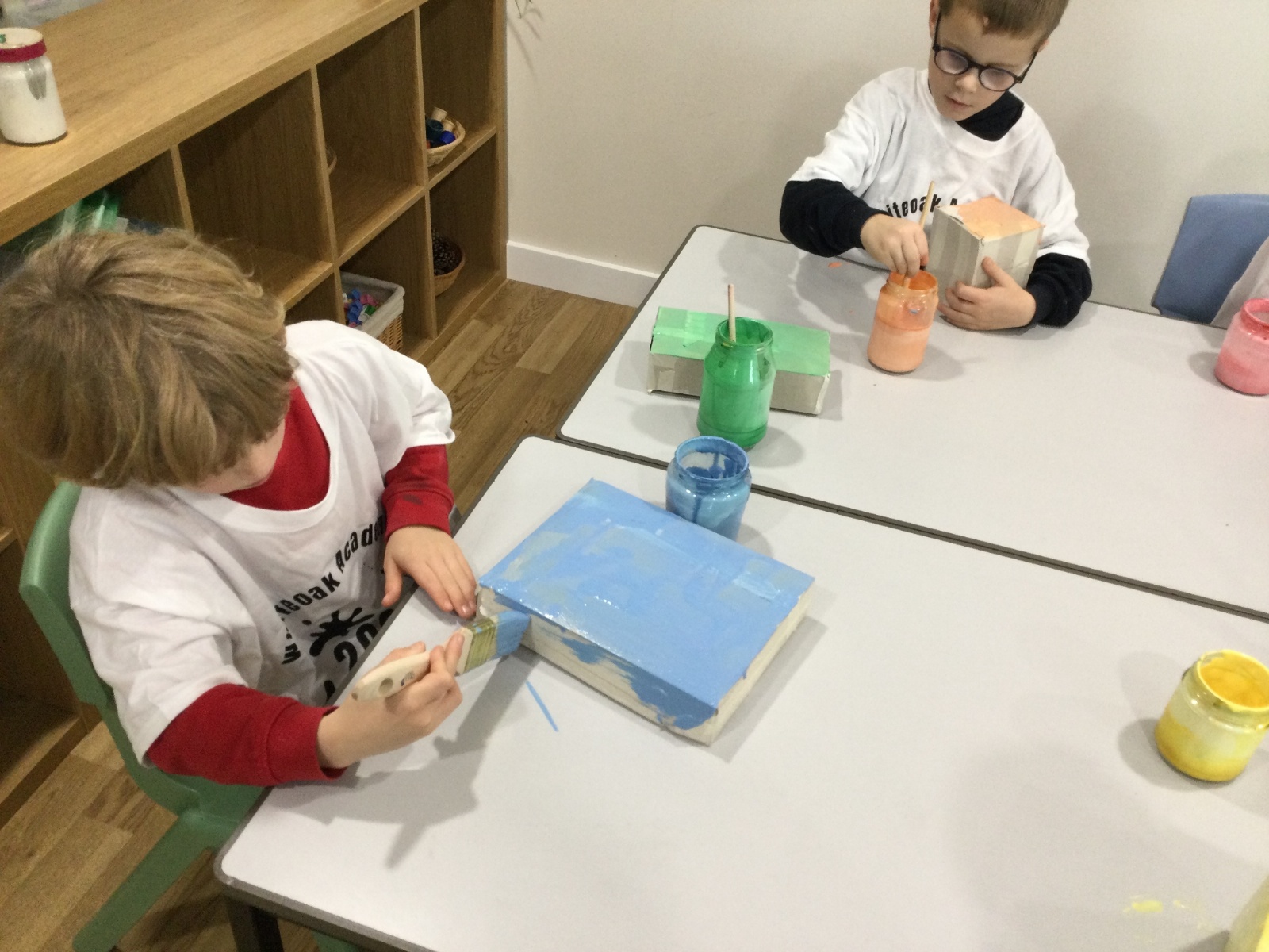 Have a look at some of our practical maths activities where we use concrete objects to explore mathematical concepts. We have used Numicon to find all the number bonds to 10. When learning about 3D shapes we really thought about the question around what makes a shape 3D. Can a picture on paper really be 3D? We explored nets of 3D shapes and used these to make our own boxes to create a group skyline. We followed a line of interest around measurement and carefully ordered our book collection by height.